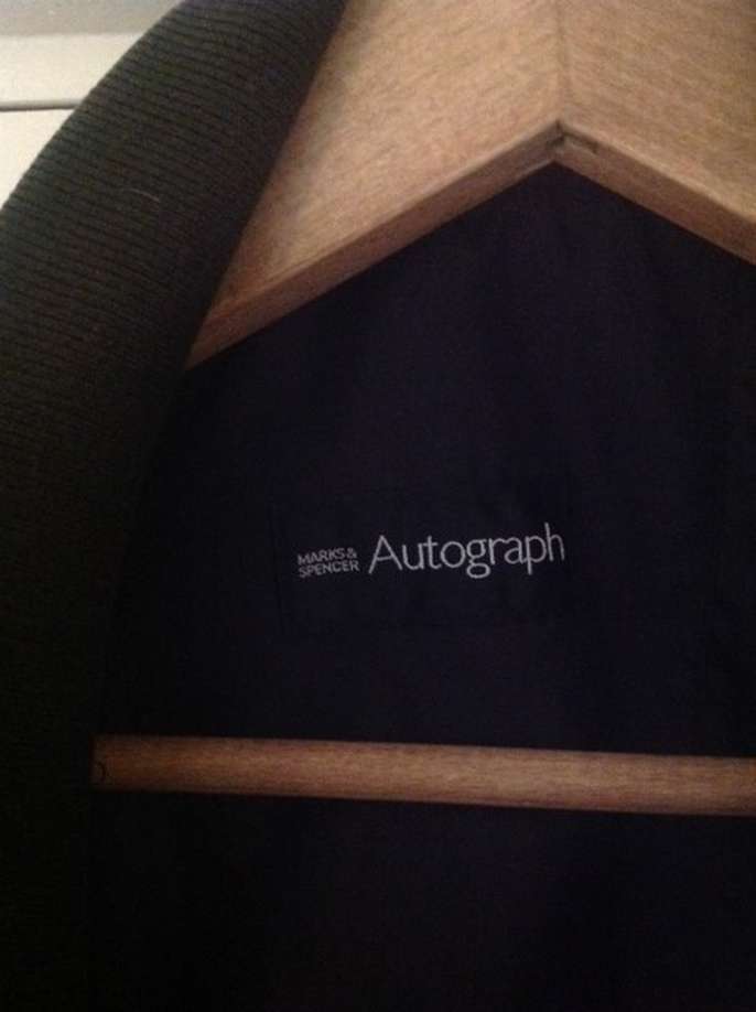 This is a lovely used Men's coat by Mark & Spencer "Autograph". Size: XL Chest: 44-46 inches (112-117cm) Made of polyester and described on the label as being "water repellent". It was used outdoors in rainy weather, but would not be a goretex type waterproof coat for hiking etc. Used but no marks, tears or rips. Collect from Guildford GU1.