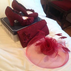 I have a beautiful pair of "Ruby Shoo " shoes size 5/38 in Burgundy along with matching clutch/shoulder bag. There is also a matching clip in fascinator. All in excellent condition as only worn for a few hours at my grandsons wedding. I am more than happy if you would like to come and try them on. Would be nice if they went together but would consider splitting if necessary. Collection Luckington SN14 6PF.