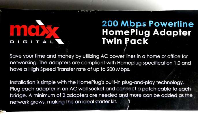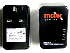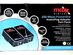 MAXX DIGITAL HOMEPLUG POWERLINE ETHERNET ADAPTER 200Mmps KIT (2 Units) No Configuration Required!