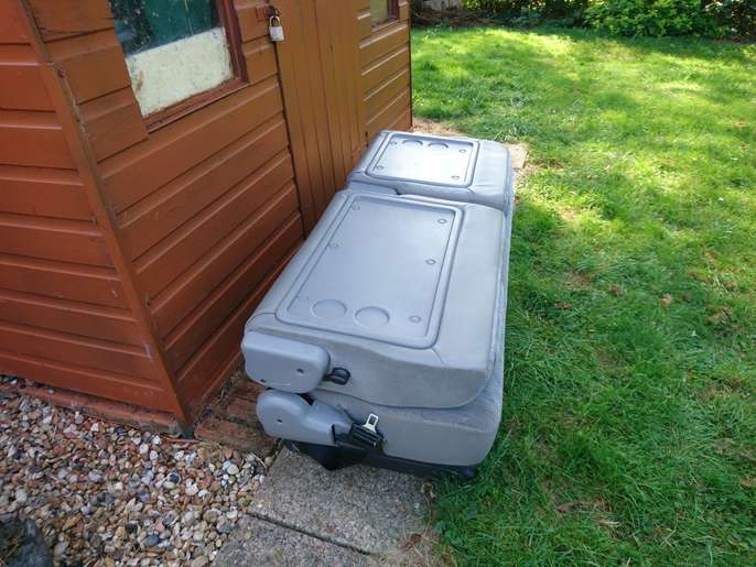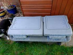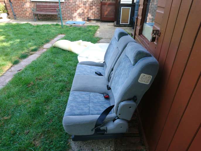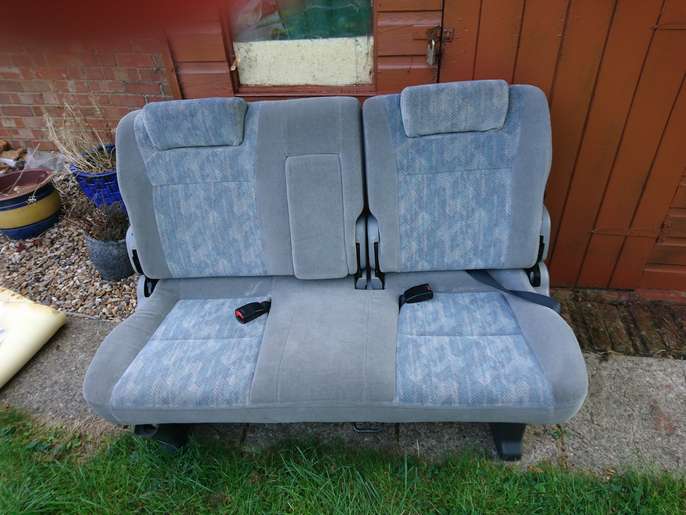 Mazda bongo middle seats, with runners. I am changing my Bongo around, so no longer need these seats. They turn into a table or lie flat for a bed. Ideal for someone converting to a campervan. the runners will need to be bolted to your van floor. They are heavy, so needs 2 people when collecting