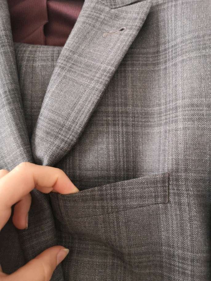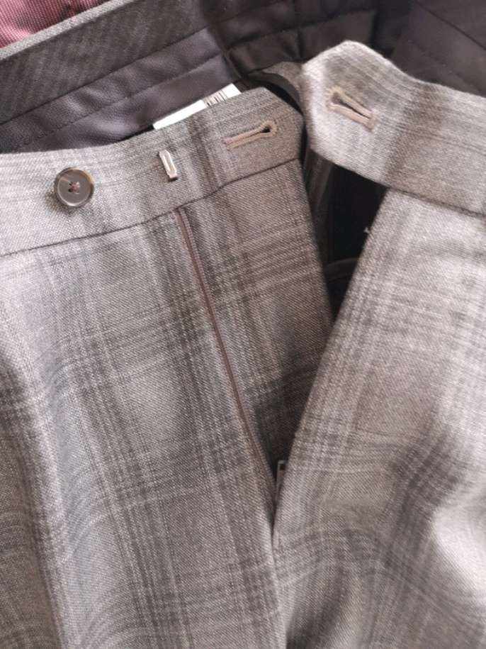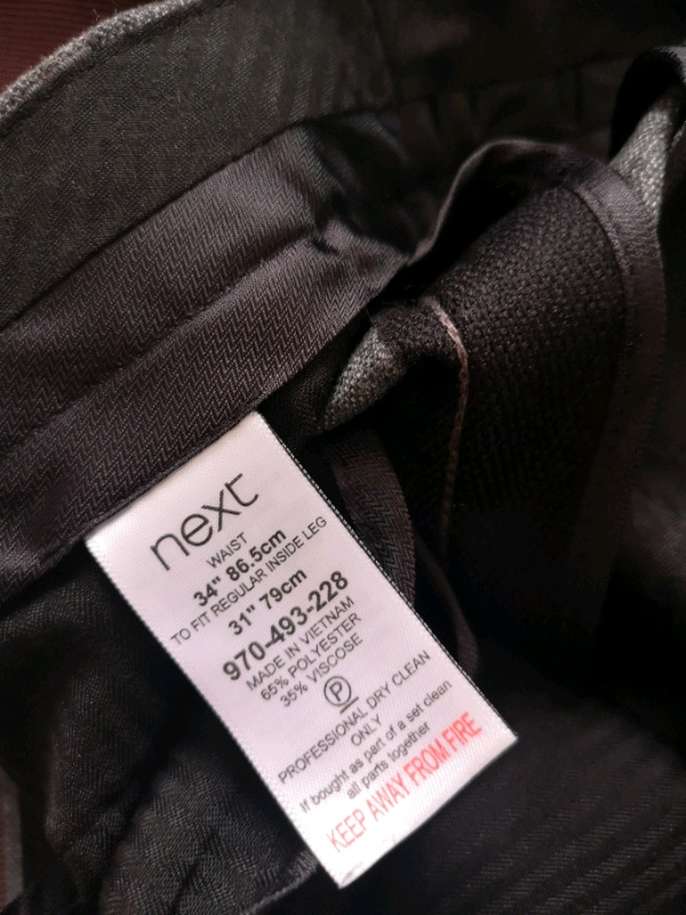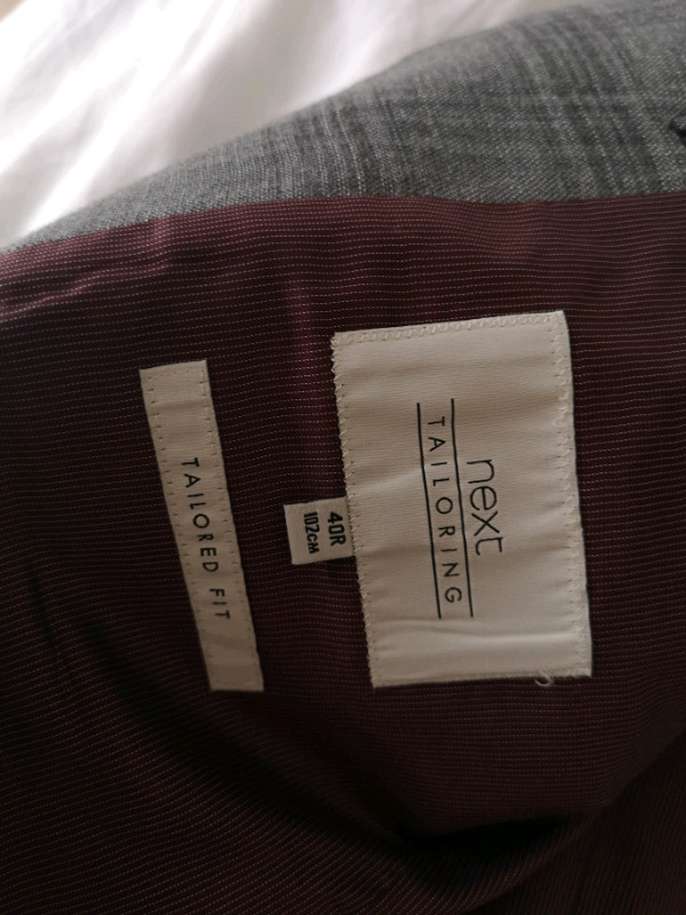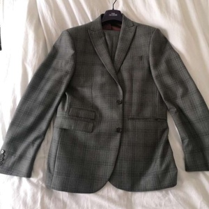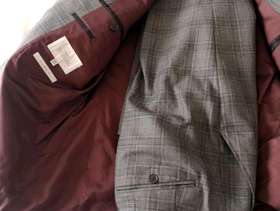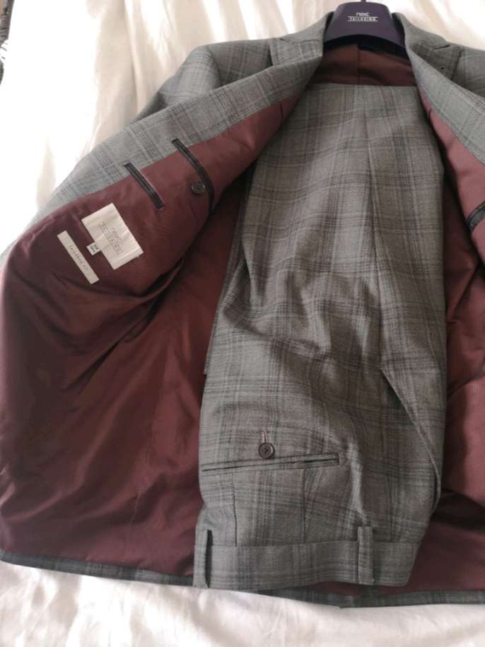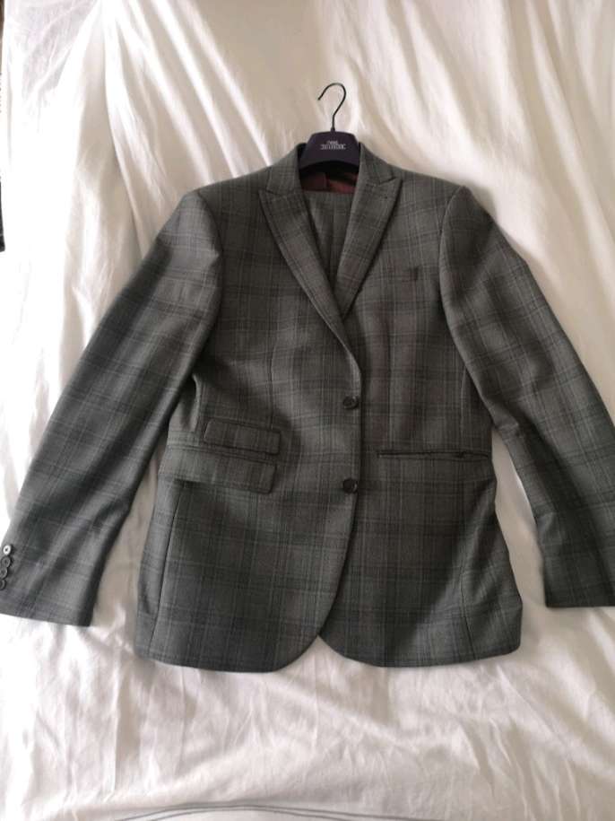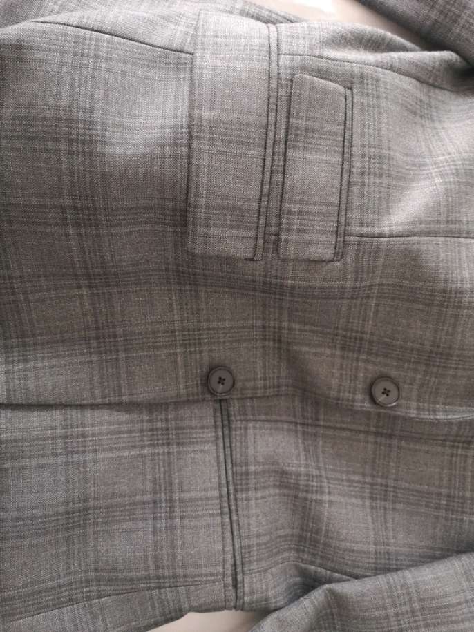 40 reg blazer 34 reg trousers 3 pockets outside and 4 pockets inside jacket 2 pockets on back and 2 pockets on front of trousers Grey with slight check print ONO Perfect condition, all buttons and zips work Smart suit