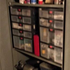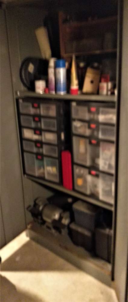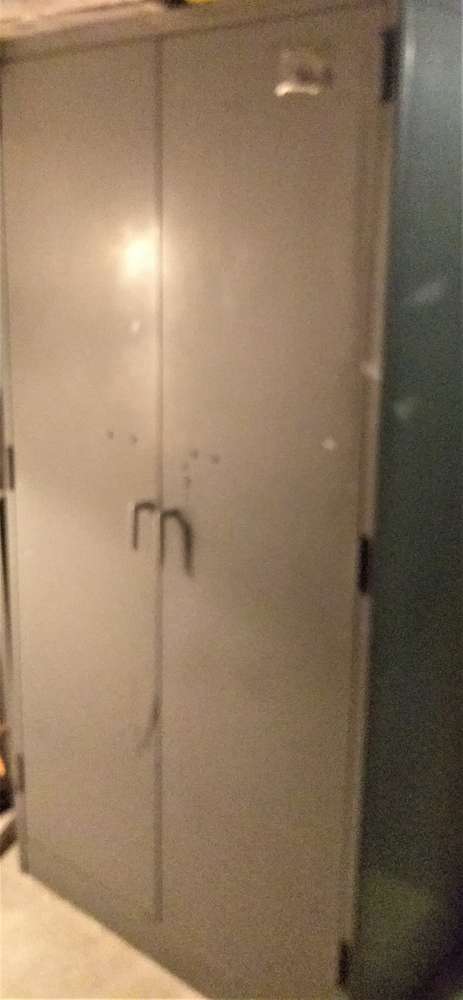 Sorry, photography awful, camera lousy. Multi-purpose storage cupboard constructed from robust, long-lasting steel. The three sturdy and adjustable steel shelves each have up to 60kg capacity. There are only two of the shelves shown installed, the other is standing by, to be fitted where and when necessary. Perfect for industrial and commercial use. Shown here in use as a storage cupboard, being sold empty, without contents, of course. A coat of paint would help it look a bit prettier, but it is sound and perfectly usable for what it was intended. No longer lockable, key is lost. 1840 high, 920 wide, 455 deep. Collectable best with two tough fellas!