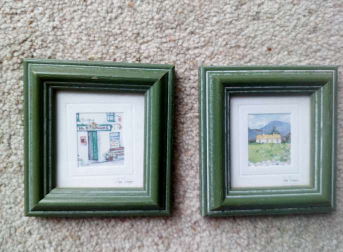2 x Framed Pretty 2 small 3 1/2" x 3 1/2" ( 8.89 cms x 8.89 cms) signed Irish Mini Ireland - The Country Collection Mini Gallery Made in Ireland Having a clear out. Hoping they will go to a new home. Money going to a local hospital charity close to my heart. Any questions please ask. Thank you