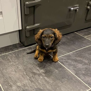 14 week old male puppy, Black and Tan colour. Lovely character, very friendly, very good with children . One of a litter of four., The rest have been sold. Picture of mum and pup below.