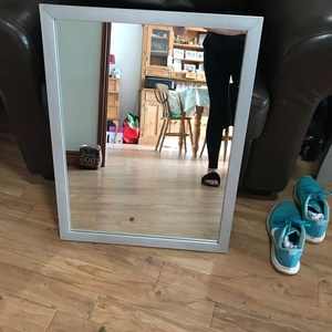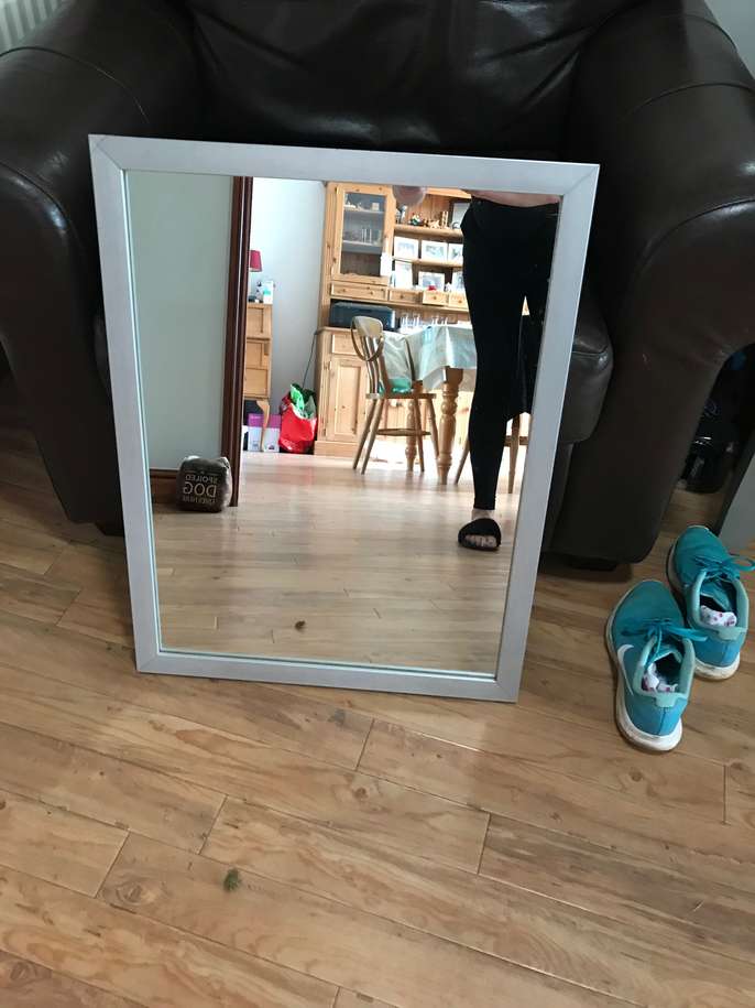 Silver Frame Mirror - 26"; x 20"; - Great condition - small piece in one corner came off as you will see in the picture, but have managed to glue it and has stayed in place.