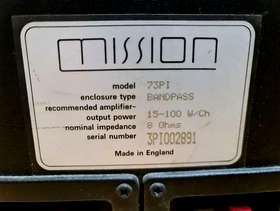 Mission 73PI Passive Sub Woofer Speaker 15-100w per channel. 8ohms Exterior housing has a few minor scratches, but overall in good used condition. x 2 available. £5 each
