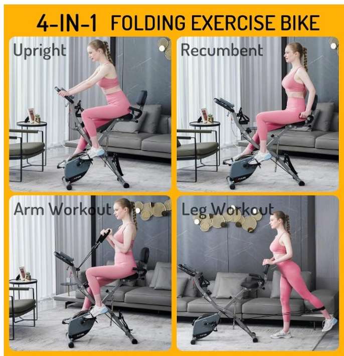 NEARLY NEW - 4-IN-1 Exercise Bike for Home Use, Folding Indoor Stationary Cycling Bike