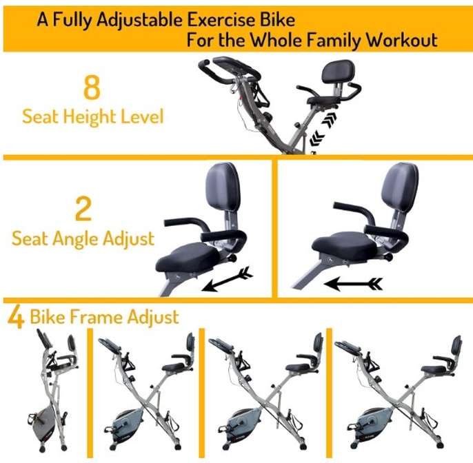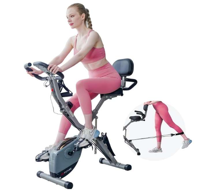 NEARLY NEW - BARGAIN AT £80 ONO NEW IS £125 COLLECTION ONLY FROM LOUGHTON, ESSEX CASH ON COLLECTION - NO BANK TRANSFERS! PHONE/TEXT - DO NOT MESSAGE AS RARELY READ MESSAGES AceFuture 4-IN-1 Exercise Bike for Home Use, Folding Indoor Stationary Cycling Bike with Arm/Leg Workout Bands,16 Levels Magnetic Resistance Fitness Bicycle with Hand Pulse and Phone/Tablet Holder About this item 【3-IN-1 Bike Frame】 This home exercise bike’s frame can adjust between the Upright, Semi Recumbent and Recumbent type, which is particularly fit for Short or Seniors who may have difficulty getting on the exercise bike. 【Add-on Arm/Leg Exercise】 Attached Arm and Leg Resistance Bands work the upper body and leg to make a full-body workout. 【16 Level Magnetic】The Brand-new 16 level manual control magnetic tension offers flexible adjustment. You can enjoy a smooth and quiet cycling experience at home. 【Comfortable Seat】 Suitable for different sizes of people. 8 Seat height adjustments; 2 Seat angle adjustments. 【Comfortable Backrest】 It is equipped backrest on exercise bike that can support your back, comfort and ease potential pain in your back after a long time of exercise. 【Traceable】 Track your progress with a big LCD Display that shows Time, Speed, Pulse, Distance, Calories. Built-in Phone/Tablet Holder can stand all of the smart phone, ipad, etc. 【Easy to Assemble】We provide an easy-read manual and step-by-step assembly video, even if you are not good at this, you can complete the assembly work on your own. Save a handy man's cost. 【Save Space】 It can easily fold away and be a compact space-saving cycle equipment. Come with transport wheels for you to move the exercise bike easily at your home gym. 【Great Gifts for Family】You will get a smooth and quiet low impact folding cycling bike. It helps you do cardio workouts at home, keep fitness and gain stamina anytime. NEARLY NEW - BARGAIN AT £80 ONO NEW IS £125 COLLECTION ONLY FROM LOUGHTON, ESSEX CASH ON COLLECTION - NO BANK TRANSFERS! PHONE/TEXT - DO NOT MESSAGE AS RARELY READ MESSAGES