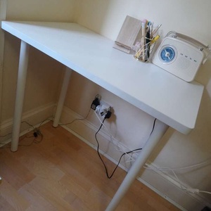 White Argos desk - nearly new. I've barely used it. Size H73, W80, D50cm. Under desk chair space H70, W62.5cm. Maximum load capaccity of desk 20kg. Weight 7kg Can be sold as seen, or flat-packed. Needs to be picked up before 17th November