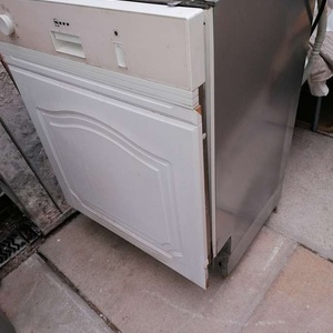 Neff semi integrated dishwasher. You see dials when integrated. White cupboard door now removed.