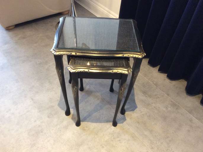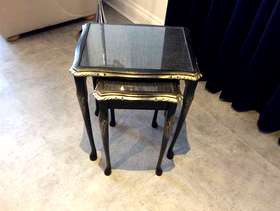 Nest of 2 solid wood black & gold newly up-cycled tables