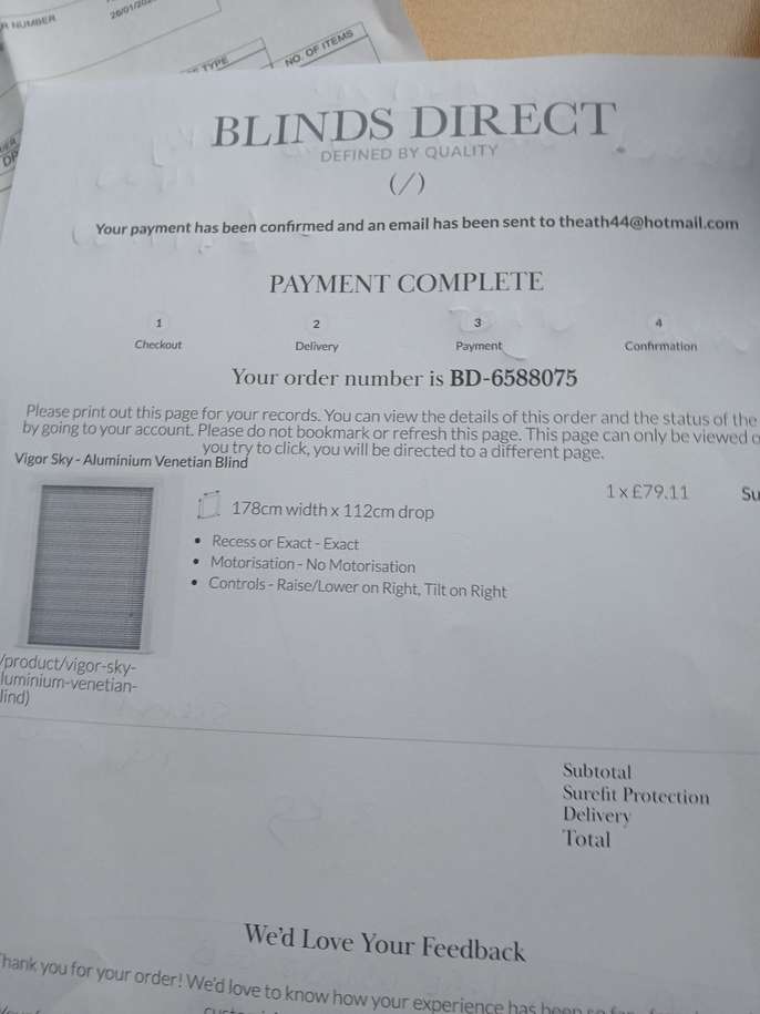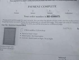 Brand new Vigor Sky colour blue aluminium ventian blind from Blinds Direct. Size 178cm w x 112cm drop. Just had new windows fitted. Old blind was put up and holes dont match up. Unable to return. All in original packaging. Collect from Forest Row