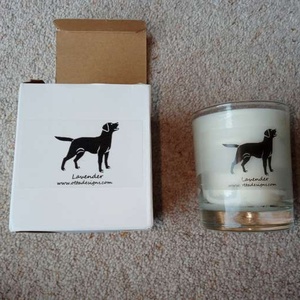 New boxed soya candle with black labrador lavender fragrance by otta designs