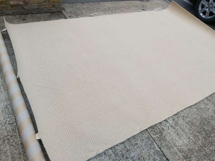 This light beige carpet is new, it has been stored wrapped on a roll for two years. It is now surplus to our requirements, it is 2 meters wide x 3.3 meters long.