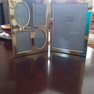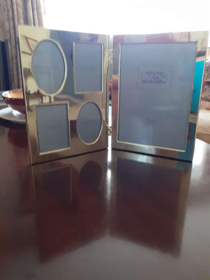 New picture frame, gold colour, freestanding book type, overall size, 28 cm × 19 cm.