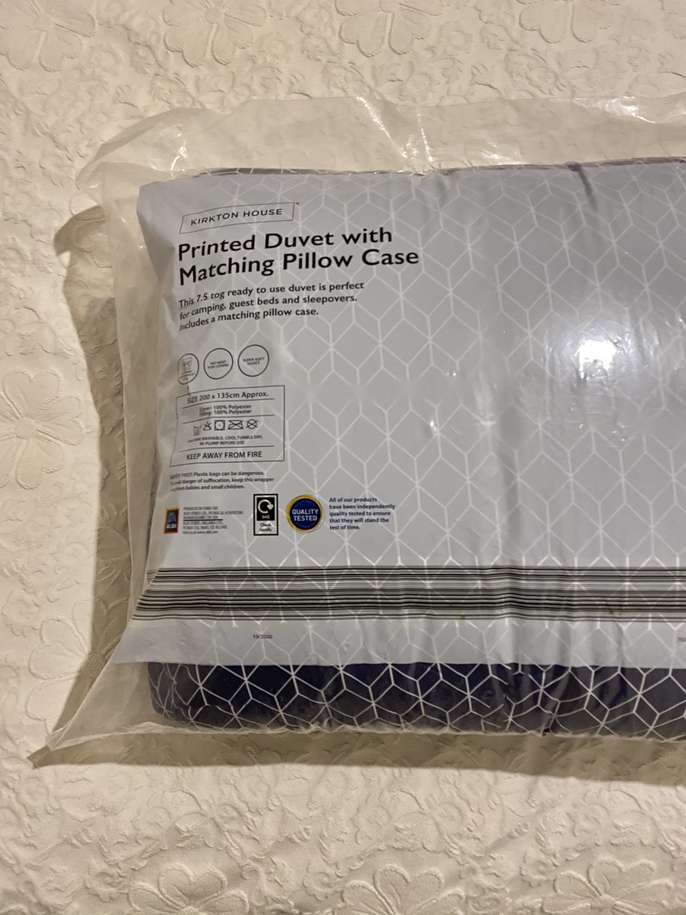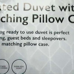 NEW single bed duvet set 7.5 tog sealed in wrapper. 1 pillowcase. Very soft quilt, machine washable. Collection or Hermes courier £5. Pet free.