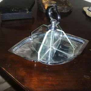 Immaculate'nibbles' dish....its probably got a more correct name...but! chrome and glass. solid and safe to use