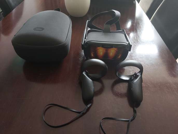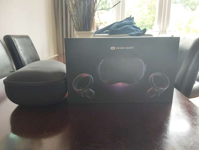 Hi , im selling an oculus quest 64 gb in good condition with an offical oculus quest case and 2 recharge batteries for the controllers, the right controller has a small scuff on it but apart from that the confition is great , all original packaging + accessories are included as well as an extra microfibre cloth for cleaning the lenses . ono