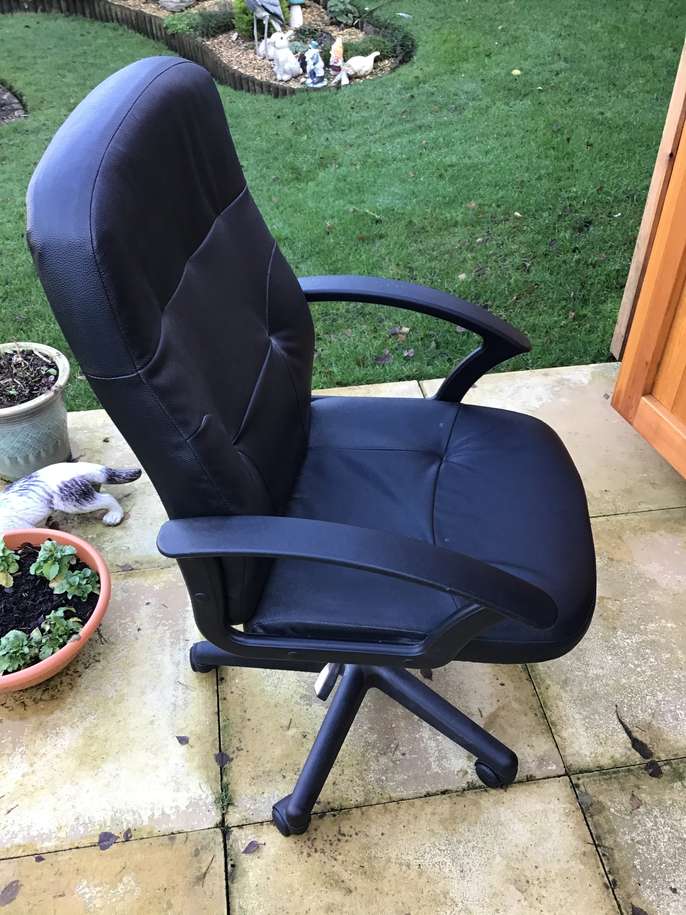 Office chair This item is in Twyford GB All the details Gas lift black faux leather office chair, in vgc. Price £10 Time Remaining This listing has finished Category Furniture Post Message
