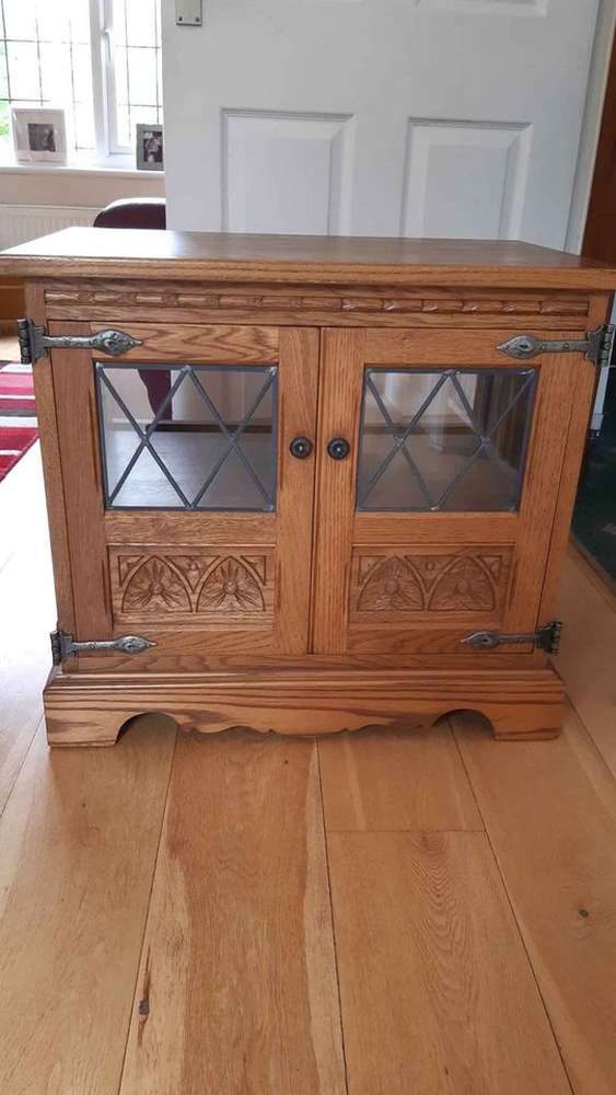 Old charm English oak cabinet Length 68cm Width 44cm Height 61cm Price new £800 Very good condition Collection only