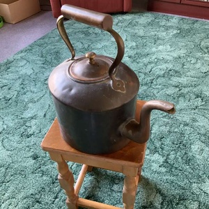 No clean. Large heavy copper kettle. Has a few dents but good condition for age.