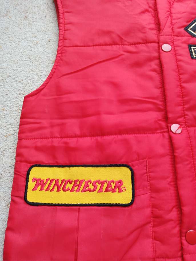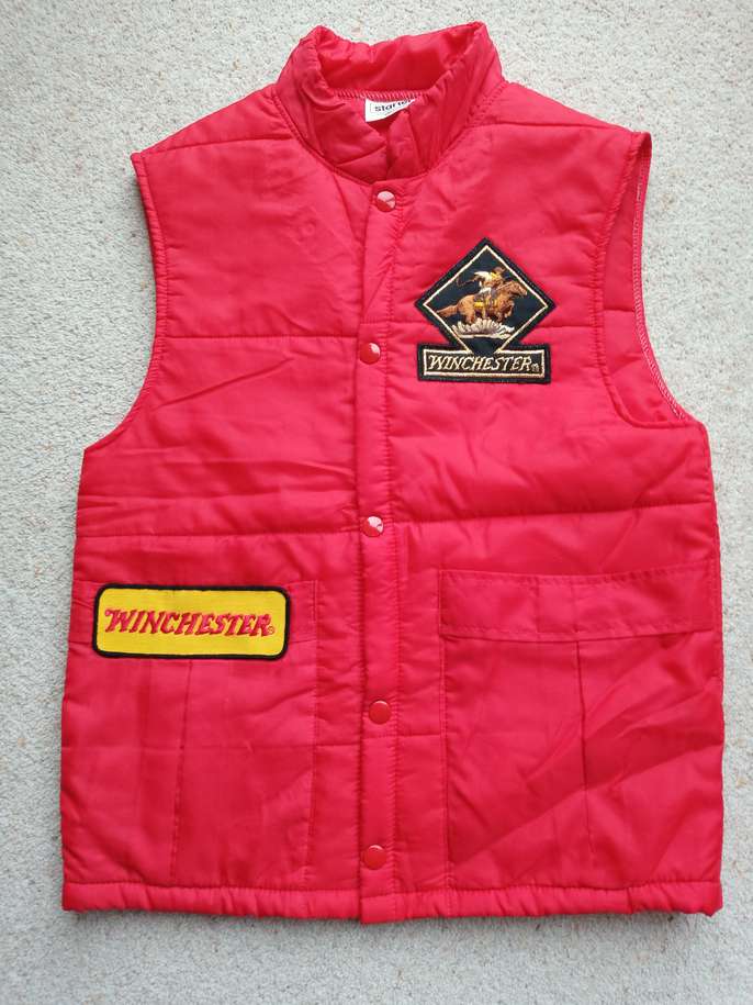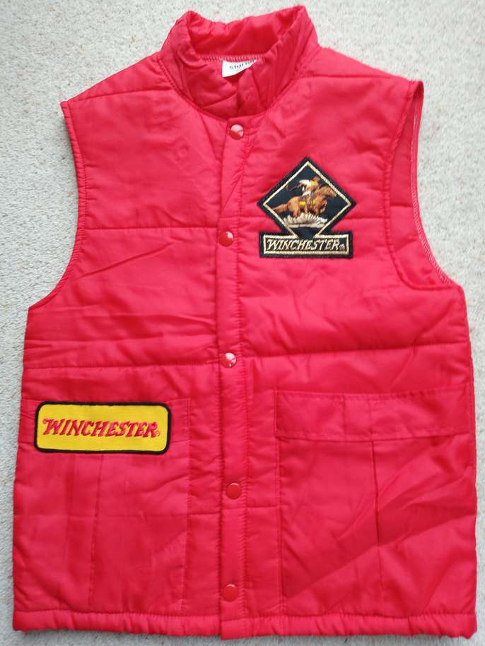 ORIGINAL WINCHESTER (MADE IN NEW HAVEN, CONNECTICUT) WITH 2 x ORIGINAL WINCHESTER BADGES WHICH ARE ALSO BECOMING RARE. POP BUTTON FASTENING. 2 X LARGE FRONT POCKETS (AS SHOWING THE SIZE WITH THE PIECE OF WHITE PAPER INSIDE) SMALL = WIDTH 18" (45.72cms) FROM FRONT UNDERARM TO UNDERARM. LENGTH 24" (60.96cms) FROM TOP SHOULDER TO HEM QUILTED. MACHINE WASHABLE, COLD WATER, NO BLEACH, TUMBLE DRY GENTLE. THIS HAS BEEN IN A DRAWER FOR YEARS BUT NEVER WORN. WOULD LIKE A GOOD HOME PLEASE. HAVING A CLEAR OUT BUT VERY MUCH DOUBT THIS BODY WARMER WILL BE SEEN ANYWHERE ELSE. MONIES GOING TO A LOCAL CHARITY Any questions please ask.