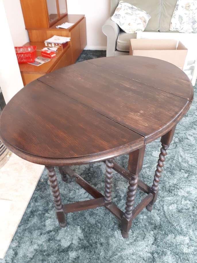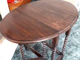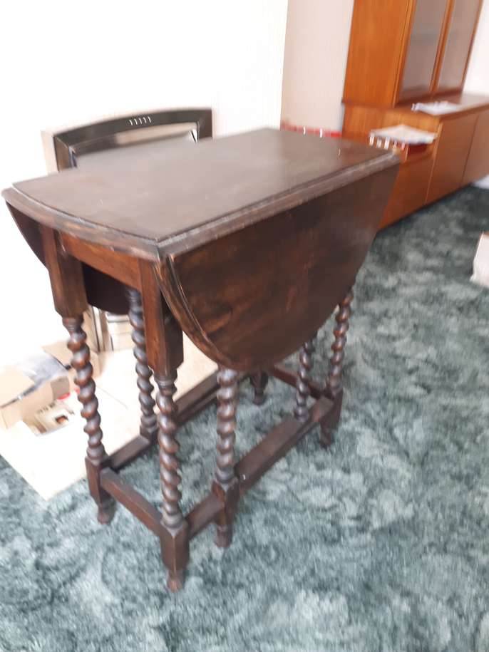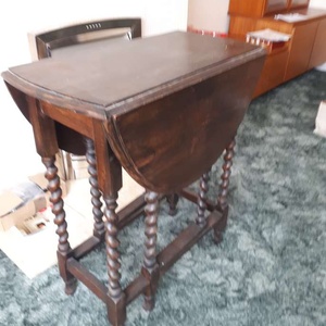 Pretty little table with barley twist legs and dropped leaf. There are signs of wear on table top COLLECTION ONLY