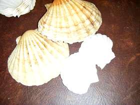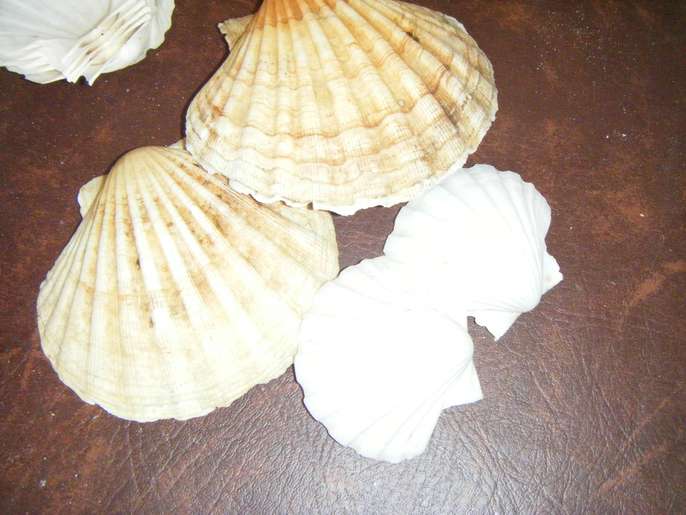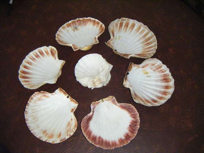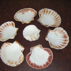 6 large and 8 small oyster shells in good condition. Have been used for serving fish entrees but may be suitable for craft work?