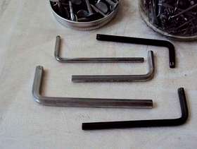 Paint pot in black, Stanley knife, allen keys, secateurs, bow saw, car dehumidifier