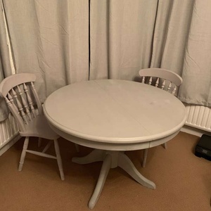 Painted pine extendable round table plus four chairs