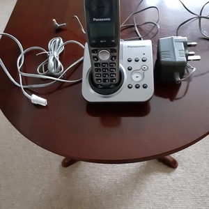 Panasonic KX-TG7230EM silver cordless landline phone with answering machine, preowned.