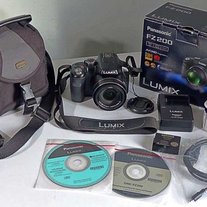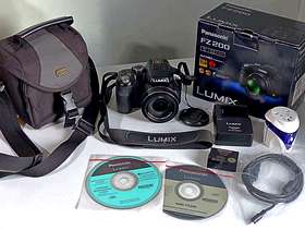PANASONIC LUMIX DMC-FZ200 – 12.1Mp / 24x ZOOM DIGITAL BRIDGE CAMERA + CASE – BLACK / BOXED “The headline feature of the Lumix FZ200 is undoubtedly its ‘world’s first’ constant f/2.8 aperture that runs throughout the entire focal range from 25mm to 600mm, allowing you to use faster shutter speeds and lower ISO settings even when shooting at the furthest reaches of the 24x zoom. Indeed, the overall optical capabilities of the FZ200 left us impressed, with the camera able to produce some excellent images with very few flaws. Performance is also pretty solid across the board, with quick start-up and shot-to-shot processing times. The vari-angle LCD screen is another welcome feature that greatly helps with tight angles and self-portraits as well as shooting video. All told, you’ll struggle to find a better camera in its class than the Panasonic FZ200. ” – Trusted Reviews “Astonishingly the FZ200 has a constant aperture of F/2.8 throughout its …. 24x zoom range, which arguably offers greater benefits to the photographer than increasing the telephoto reach.,,, that F/2.8 lens is a technical triumph that will make a real difference to your photography” – Photography Blog An amazingly versatile Panasonic LUMIX DMC-FZ200 digital camera in black. HIGHLIGHT FEATURES: Renowned ‘Leica’ optics 24x optical 2-speed zoom lens (25-600mm, ‘Nano’ coated) + 4x digital zoom Power Optical Image Stabiliser (for sharper photos) 12.1Mp MOS sensor JPEG and/or RAW file formats 1920 x 1080p Full HD Video (with active zoom) + stereo sound (with wind cut) 3” vari-angle LCD screen (460k resolution) PLUS electronic viewfinder (with dioptre adjustment) Hot-shoe for external flash Accessory socket allowing the use of an external microphone or a remote control Built-in flash plus excellent macro modes Exposure Compensation, AF Tracking, Red-Eye Removal, DPOF Support, Histogram Display, PictBridge Support, self-timer (2 & 10 secs) Mains battery charger. Built-in Memory, plus SD, SDHC & SDXC Memory Cards (not included) Tripod bush Engineered and made in Japan. In very good condition overall (see detailed images) - there are some modest ‘scuffing’/marks to both the LCD screen and body (see photos 6 & 7) – in the former case these are only visible when the screen is not in use (see photos 5 & 6). COMES COMPLETE WITH: • A spacious ‘Hama’ padded camera bag with shoulder strap, hand-carrying handle, belt loops, internal zippered pocket for filters etc. and also a further front zippered pocket for batteries (with secondary internal pockets for memory cards) etc. • Genuine Panasonic battery & mains battery charger with cable. The Lumix battery charger is of the US-style with 2-(folding)-pins and comes complete with a ‘Hähnel’ 4-way travel adapter which will accommodate the use of UK, US, European and Aust/China power outlets/sockets (and can also be used independently). • ‘Lumix’ neck strap • 2 No. CDs containing computer software and pdf versions of both the Basic & Advanced User Manuals • A brand-new 2m USB cable for downloading to a computer by wire, rather than via a card reader • Lens cap • Original ‘Lumix’ box With both “Intelligent Auto” and also a wide range of manual settings available, this model is ideal for both novice and experienced photographer alike. Bottom line: it takes superb photographs & videos! All photos are of the actual camera for sale - from a smoke-free home Dispatch by Royal Mail + £4 - will be well packed for shipping