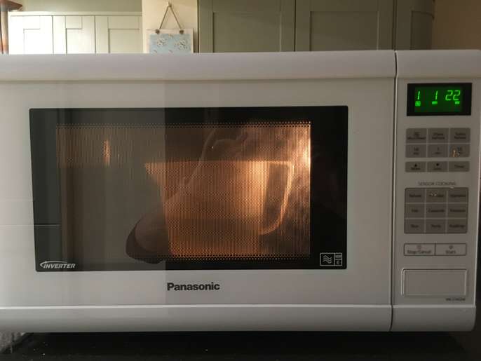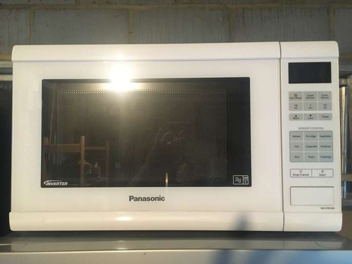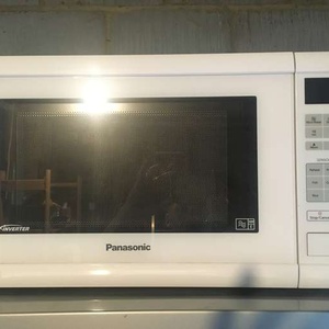 Panasonic white microwave 32L Product number NN ST452 W 525x310x388 (l, w, h) Full working order Used with slight damage to outer casing but repaired (see photo) Not needed due to refurb kitchen Collect from RH5, Walliswood