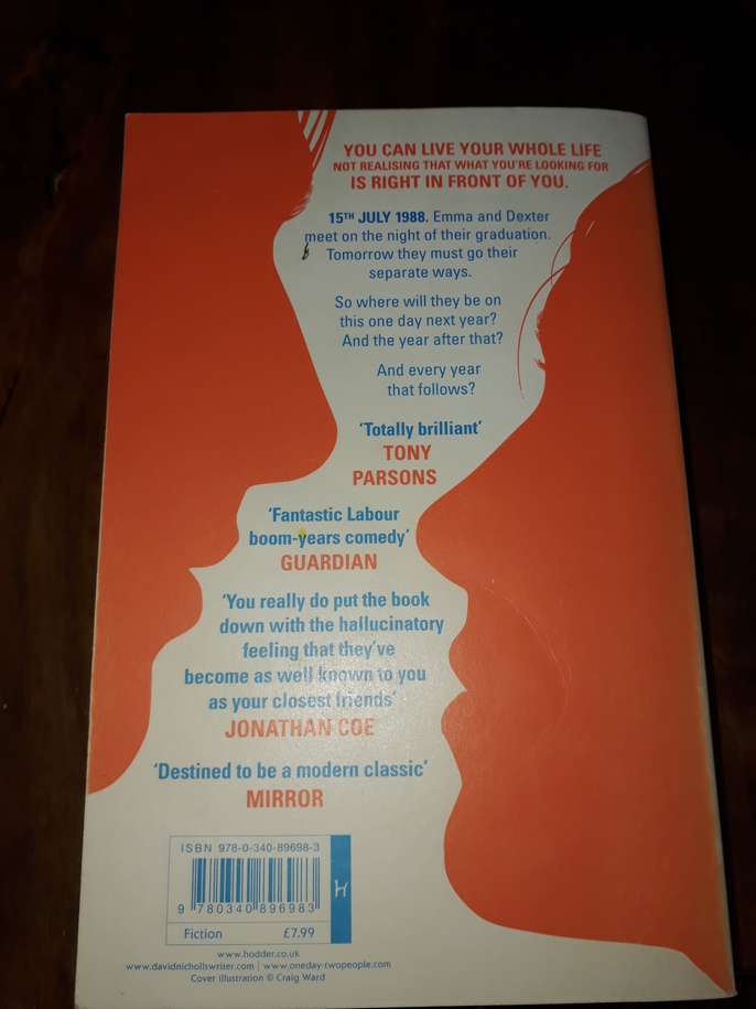 For those who are avid readers and libraries are not open ONE DAY BY David Nicholls good condition Pick up only from a virus free home in Westbury.