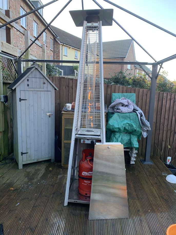Gas patio heater, with gas bottle and cover. Only used twice. Collection only, cash on collection.