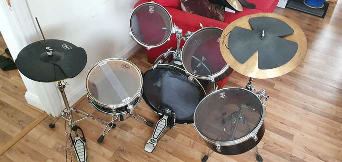 This is used but in good condition. I have the full set of mesh head and real drum heads. If you have any queries, please call me on 07979696875 Collect ion from BR1 4LH I can deliver within 5 miles of BR1 4LH https://www.youtube.com/watch?v=3kGAm2otTrI https://www.youtube.com/watch?v=vipvl7dSEow http://compactdrums.com/pearl-rhythm-traveler-reviewed/