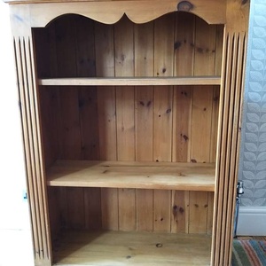Pine book case for sale good condition 4ft high 12in deep 2ft 8in wide.