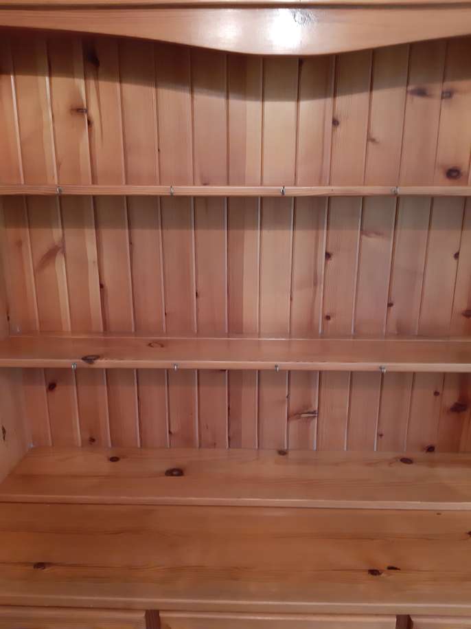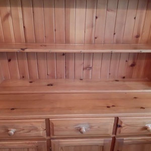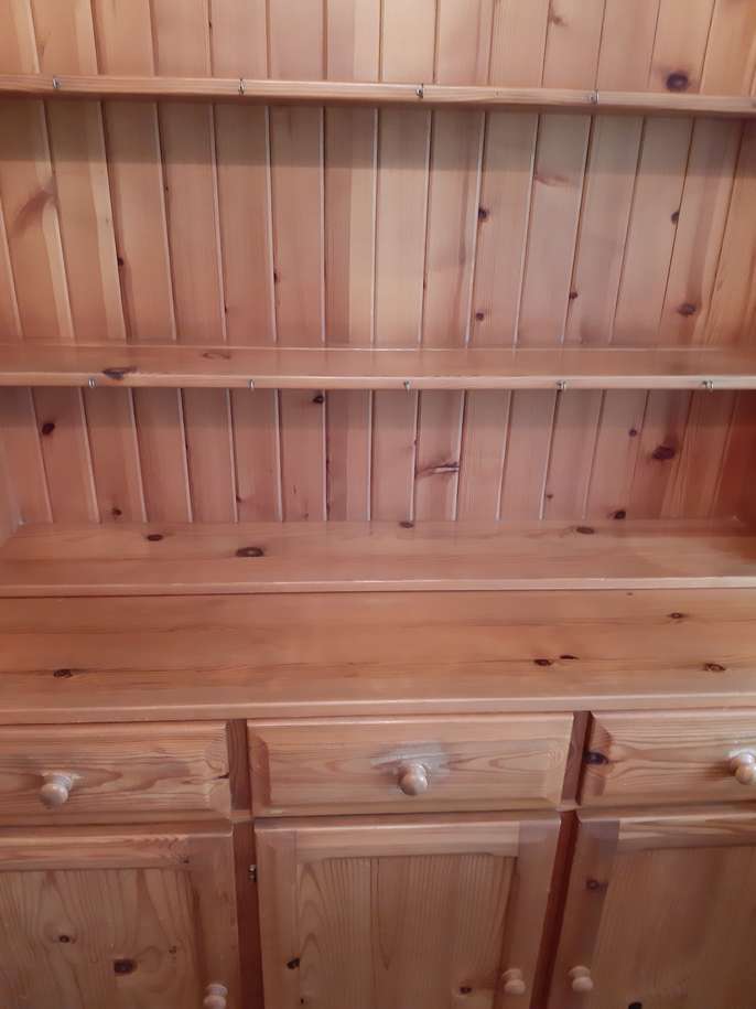 172 cm length 119 cm width pine dresser very good condition drawers and cupboards open perfectly 3 drawers and 3 cupboard doors Pick up only from cuffley herts