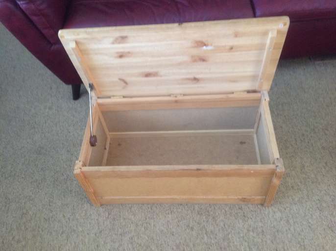 Pine Wood storage box in very good condition Top and frame made of Pine Wood with hardwood inserts (see photos) Size approximately :- 29 inches by 15 inches x 12 inches This box is very sturdy and was recently advertised for £10 Will now accept £8