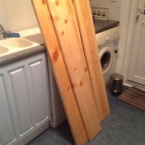 Seven Pinewood Boards in almost new condition Size:- 7.5 inches wide x 54 inches long x 3/4 inches thick Will sell for £18 for the seven 29/11/19 I am desperately in need of the space so will now reduce to £12 (An absolute bargain)