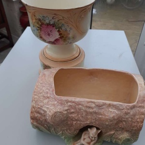 A vintage decorative Foley earthenware plant holder and a Sylac planter. Price for both.
