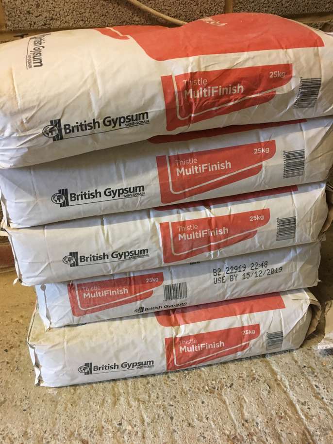 British Gypsum Thistle multi-finish plaster. 5 x 25kg bags surplus to requirements. Use by date 15.12.2019. Collect from Swanmore. Call 07557 052952.