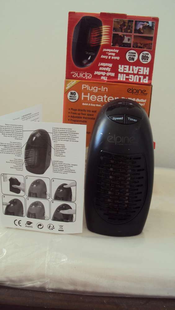 Bought this small portable heater (16cm H x 7 x 8) to give heat to the kitchen when I don't have the CH on and to take on trips where perhaps in the Autumn or Spring the hotel or Guest House didn’t have the CH on, very good for instant heat, plugs into the wall, adjustable thermostat and 12-hour timer, by Elpine. Used in the winter of 2019 and been in its box in the cupboard ever since! Selling for £5 (was £10.50 new). Instruction leaflet in the box. You literally plug into your wall socket (not an extension lead) and you can set the temperature and time it if you want. There are 2 speeds for the fan. Collect North West London (NW11) halfway between Golders Green / Finchley Central. Bus stops in Finchley Road a 3 min walk or 5 min walk to bus stops on North Circular Rd.