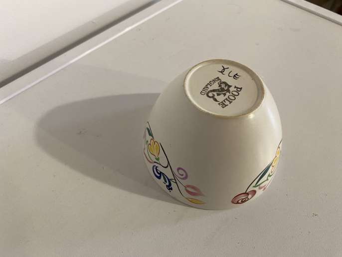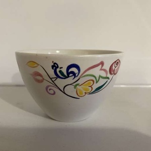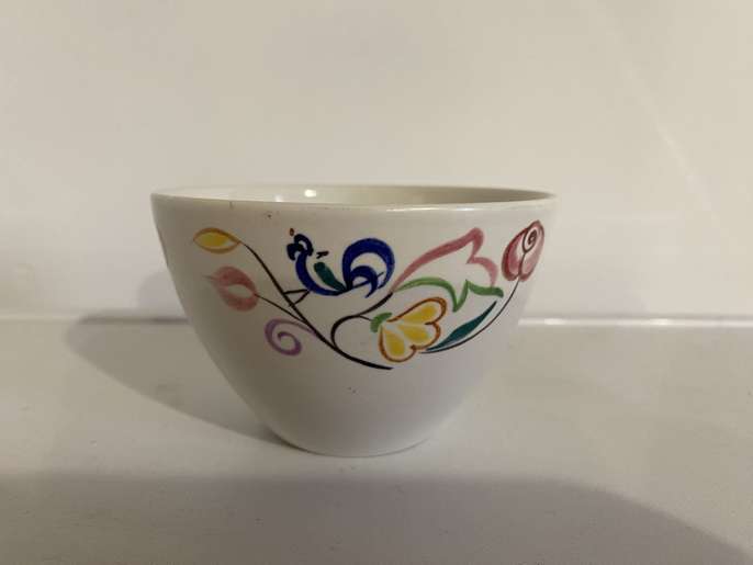 POOLE POTTERY TRADITIONAL WARE SUGAR BOWL, BLUE COCKEREL LE PATTERN 1970s? Height 6cms Width at rim 10cms No chips