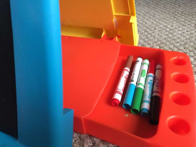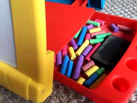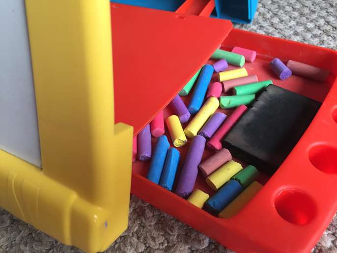 Portable Chalk/Whiteboard This item is in Malmesbury GB All the details Used condition, folds flat, comes with pens, chalk (some broken) & eraser Price 5 Time Remaining This listing has finished Category Baby and Child Post Message