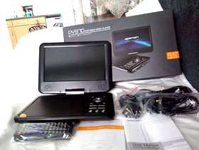 Portable dvd player 9.5" swivel screen, excellent condition only 7months old. Remote control included also includes car charger. All original boxes and bags. Collection only please
