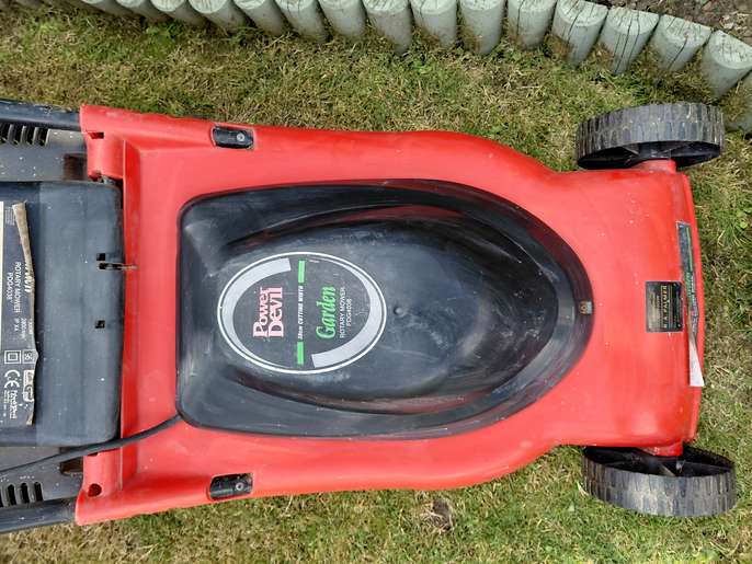 For SALE - a lightly used Power Devil Electric Lawn Mower (1300W) in perfect working order. This lawn mower is of good sturdy construction with a robust plastic casing. The large grass box (50 litres) is easily removed and replaced for emptying. The cutting blade gives a generous 38cm cutting width. The blade has superficial rust but still cuts very efficiently. Happy to demonstrate this on collection. Cutting height can be adjusted via the position of the wheels - there are 5 different cutting heights (20 - 75mm). The controls mounted on the handle are comfortable and easy to operate with safety button. The very long power cable is in sensible yellow - easy to see to avoid running over it! Comes complete with instruction manual. Cash on collection from New Ferry CH62