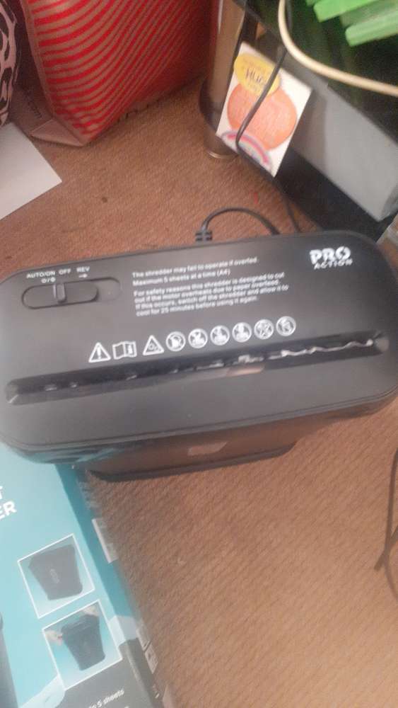 Boxed paper shredder been used excellent condition ideal for anyone office or home. And christmas gift