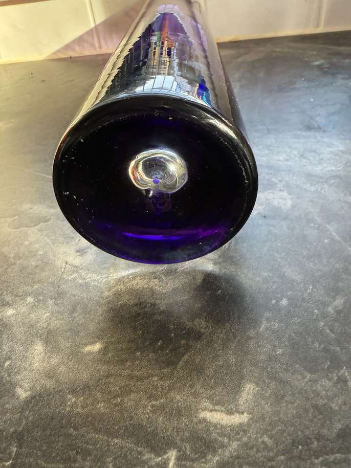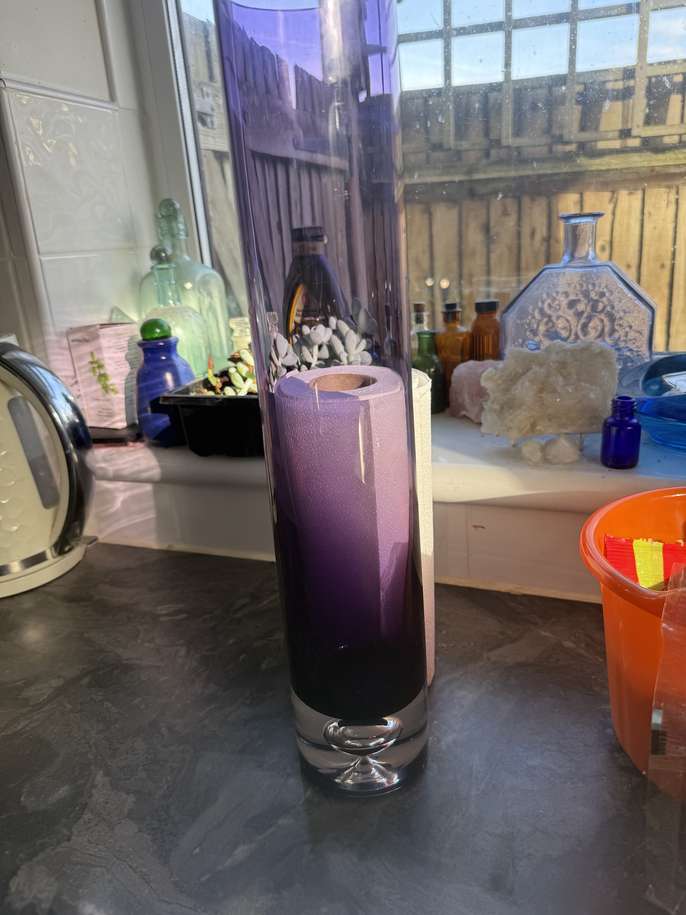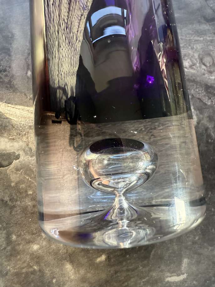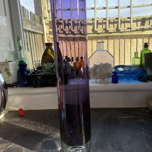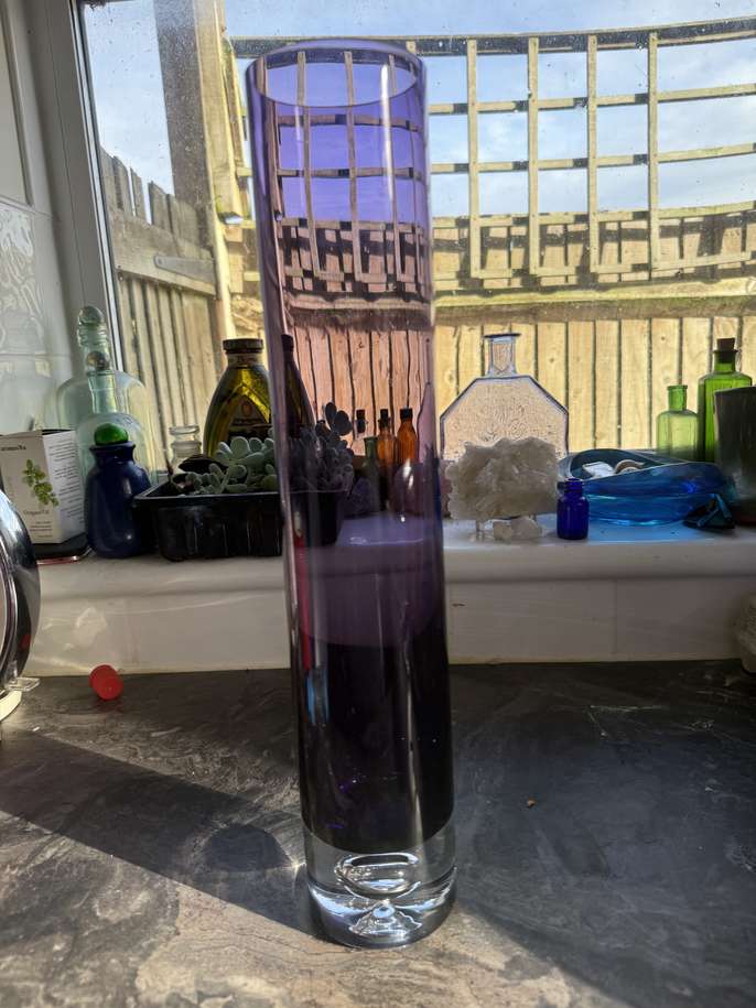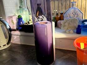 Cylinder shaped purple controlled bubble vase very good condition some wear on the base and one shallow scratch that’s almost impossible to photograph because of reflections 40cm tall 8cm wide heavy