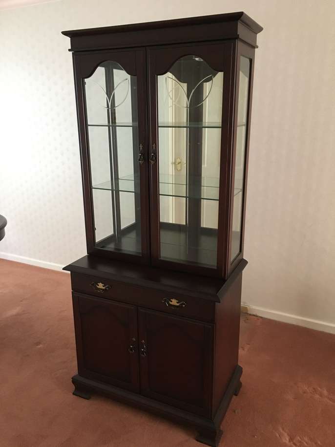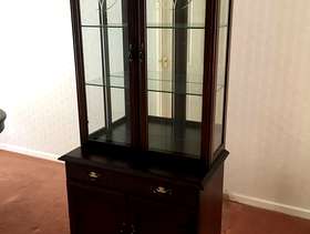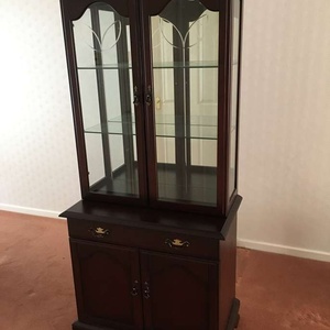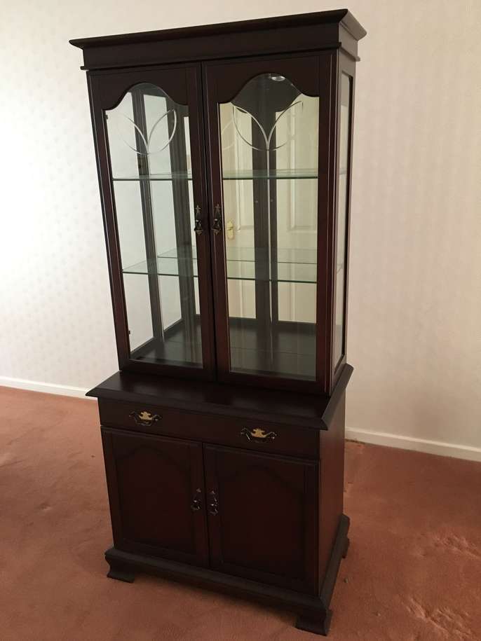This is a very well made wooden display cabinet the top section has glass doors and glass shelves ideal for displaying items the bottom section ideal for storage i can deliver to the local halifax/bradford area for a £15 delivery charge
